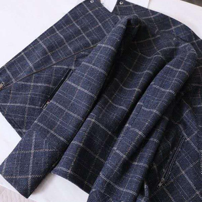 2021 Spring Women's Korean Slim Top Plaid Workwear Motorcycle Jacket
