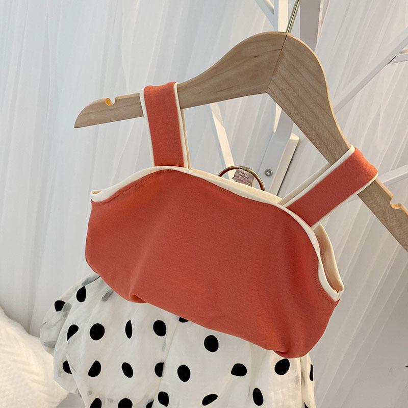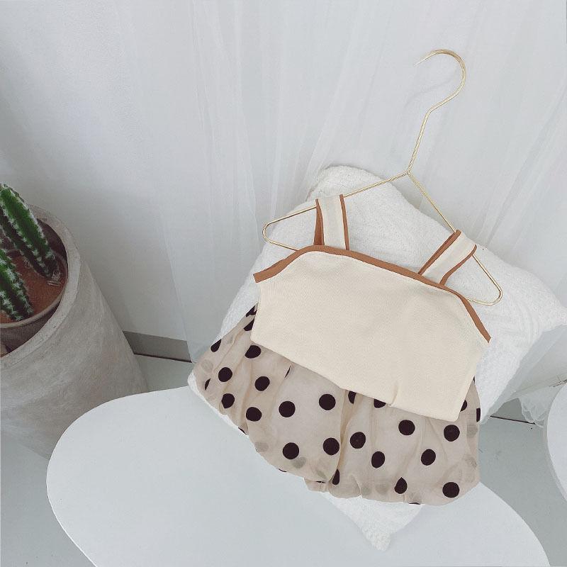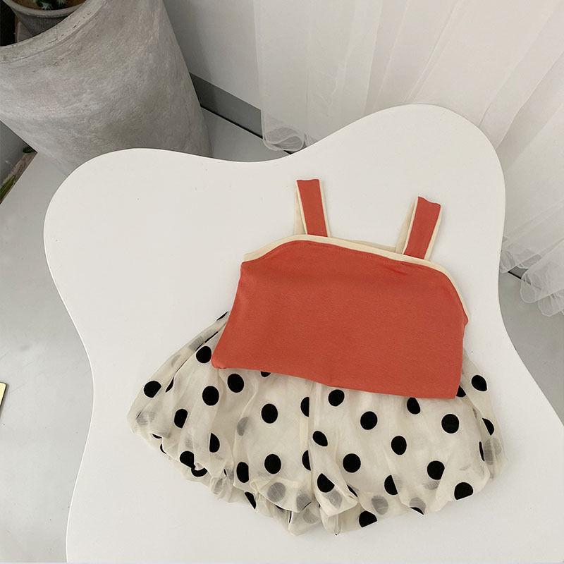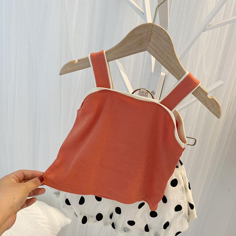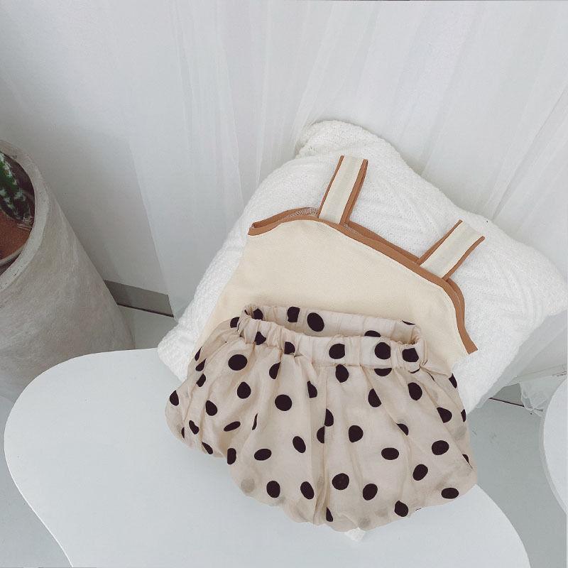 2PCS Children Clothing Set Spring Summer Sling Girls Suits Wave Point Sleeveless Tops + Pants Clothing Set