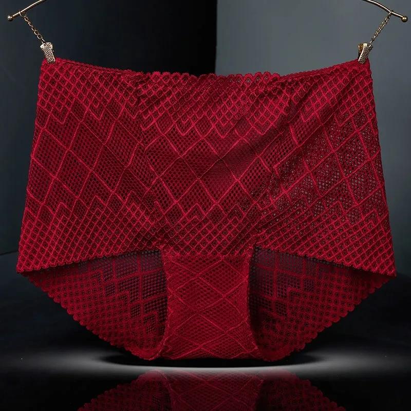 2PCS Lace Panties Ladies Sexy Charming Middle High Waist Plus Size Underwear Abdominal Hip Lift Pure Cotton Seamless Briefs