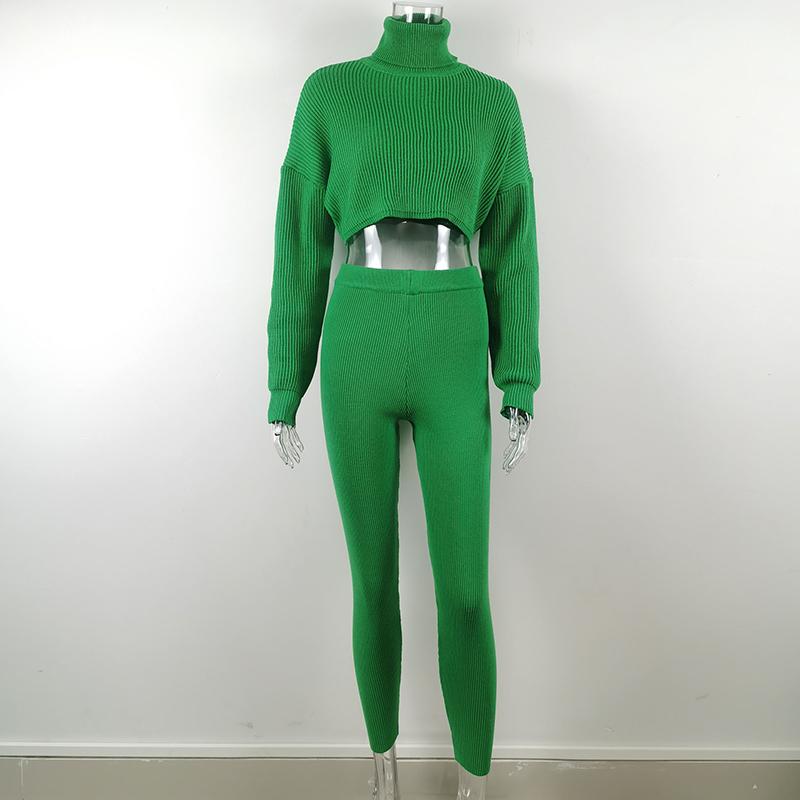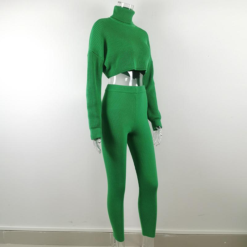 2PCS Ladies Sweater Set High Neck Long Sleeve High Waist Solid Color Wool Pants Two Piece Casual Suit Pullover Sweater Multicolor Bottoming Shirt