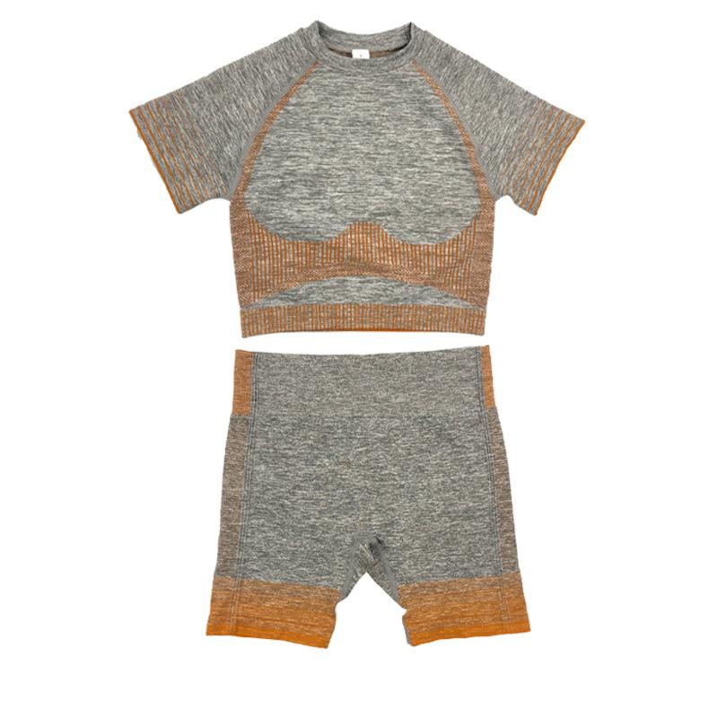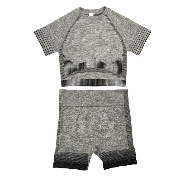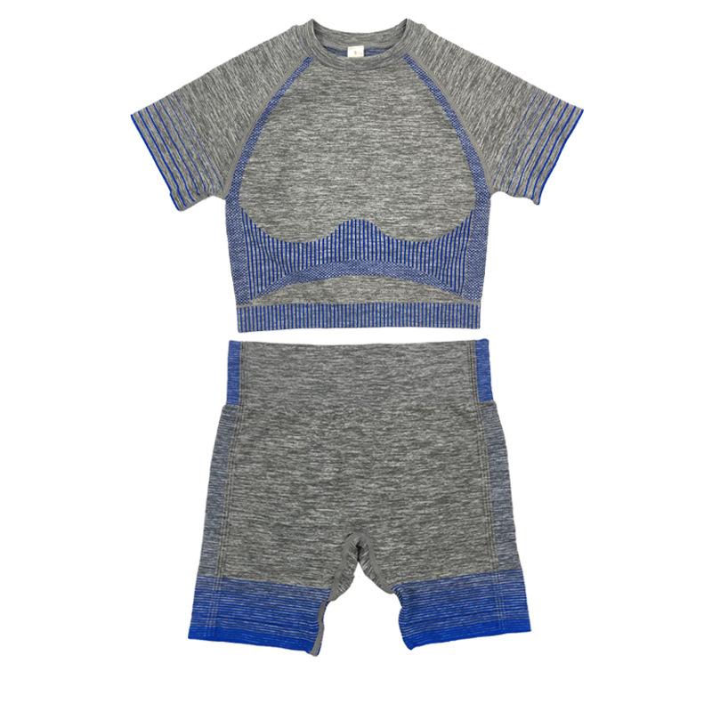 2PCS Running Sports Short Sleeve Shorts Combination Suit Women's Fitness Tight Seamless Knitted Yoga Clothes Gym Bodybuilding Sets Active Wear