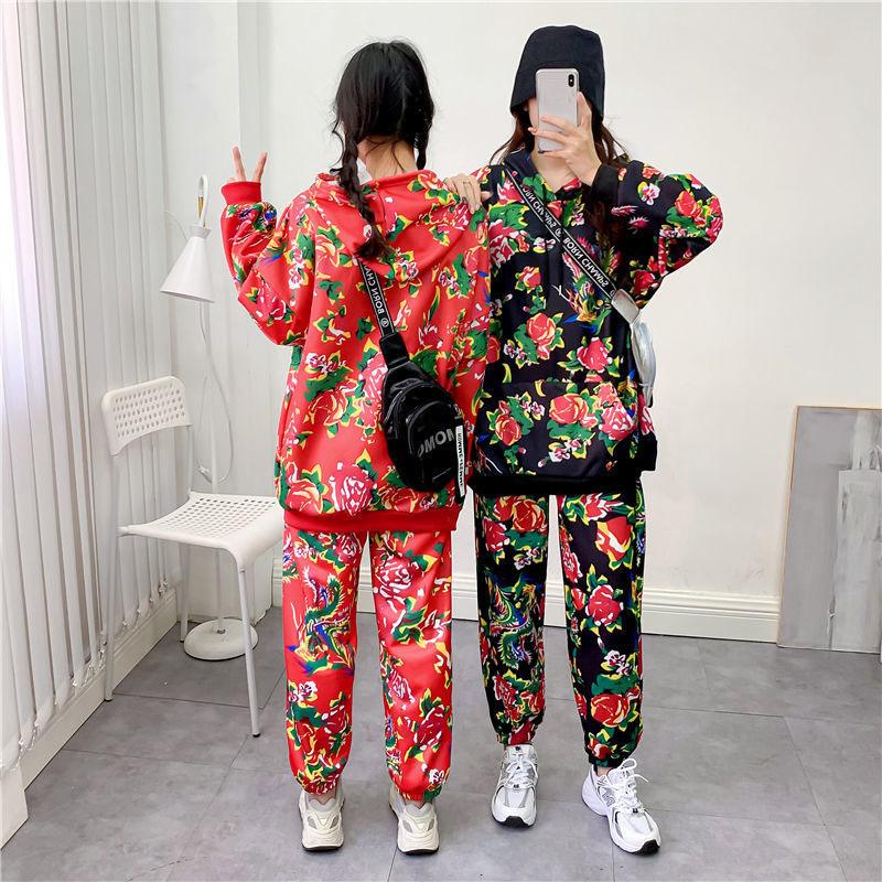 2pcs/set Women Sweatshirt Set Loose Printed Hoodies Harem Pants Two-piece Set Laies Outfits