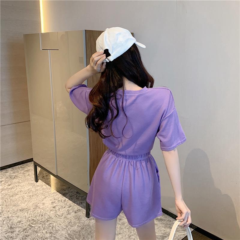 2PCS Summer Casual Sports Suit Women's Wide-leg Shorts + Short-sleeved T-shirt Two-piece Fitness Jogging Clothes Home Comfort Sets