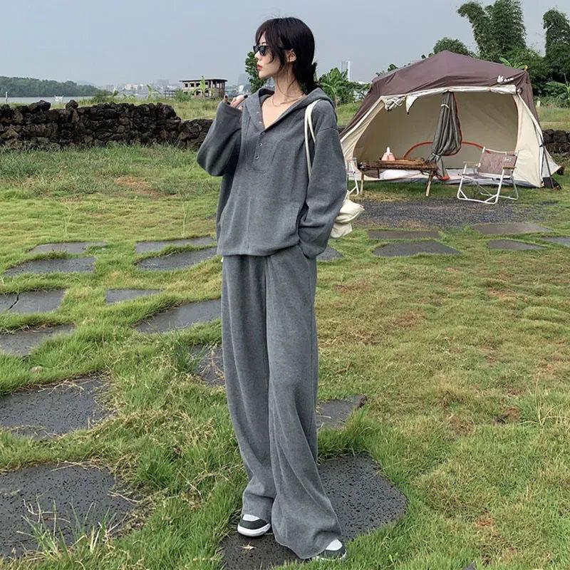 2PCS Women's Extra Large Autumn Suit Fat Girls Casual Long Sleeve Sweater + Wide Leg Pants Two Piece Sports Suit Jogging Suit