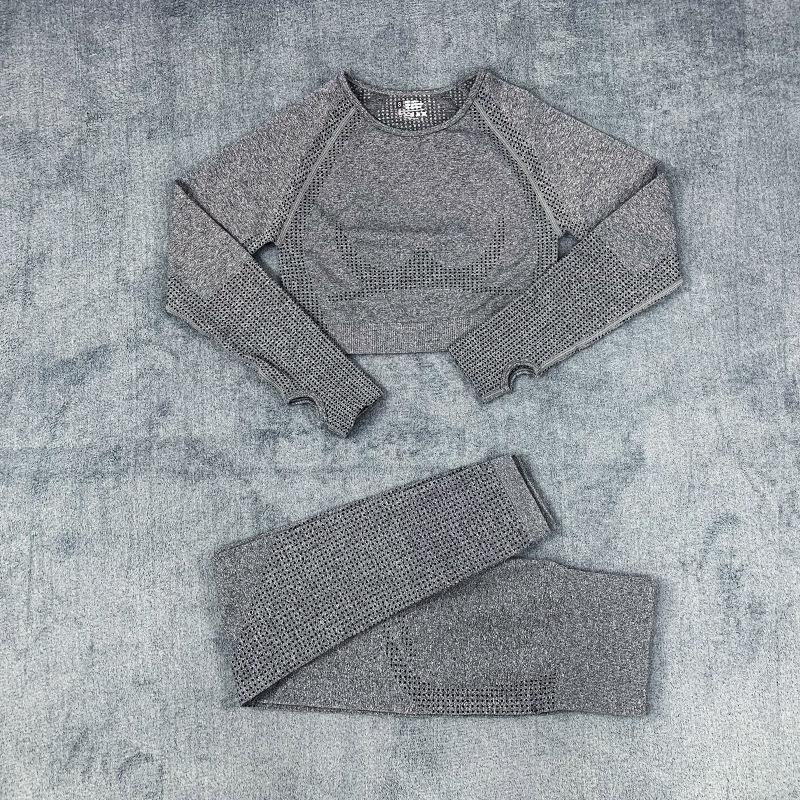 2PCS Women's Seamless Fitness Yoga Clothing Set Sports Long Sleeve Pants Set Bodybuilding Two Piece Set Tracksuit Active Wear Athletic Clothing Sets