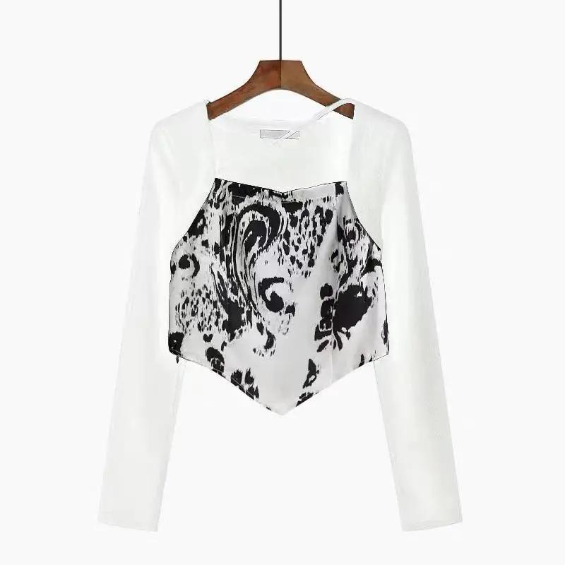 2PCS Women's Suit Autumn Pure Desire Gentle Long-Sleeve Top + Floor-Mopping Wide-Leg Trousers Two-piece Set Casual Personality Girl Jogging Suit