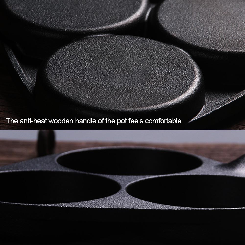 3-hole Fried Egg Pot with Wooden Handle Thickened Nonstick Cast Iron Frying Flat Pan 14.96x7.87 Inches