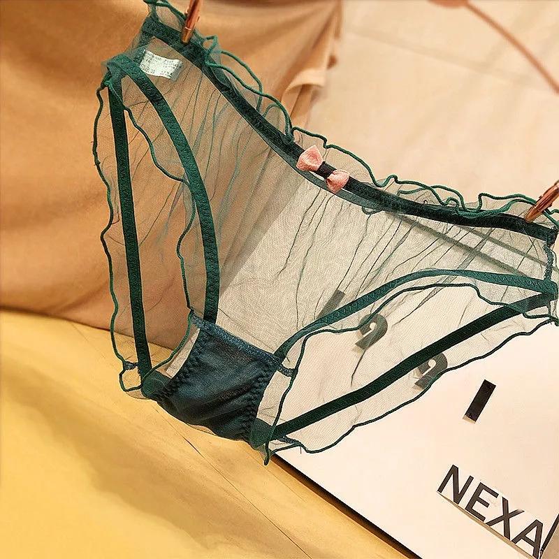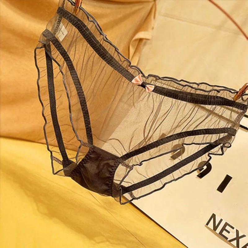 3PCS Japanese Sexy Girl Lace Panties Ultra-thin Transparent See-through Briefs Temptation Low-waisted Bottoms Mesh Hollow Out Underwear Shorts