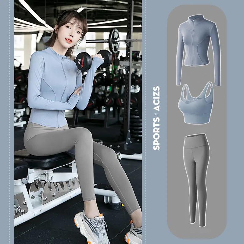 3PCS Women's Yoga Clothing Suit Sports Suit Four Seasons Running Sportswear Running Suit Active Wear Elastic Stretch Outwear Gym Fitness Clothing