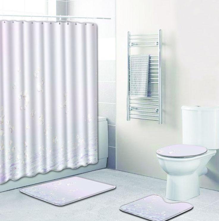4-piece Shower Curtain and Cushion Bathroom Set Shower Curtain Non-slip Bath Mat Toilet Seat Cover Carpet Home Decor