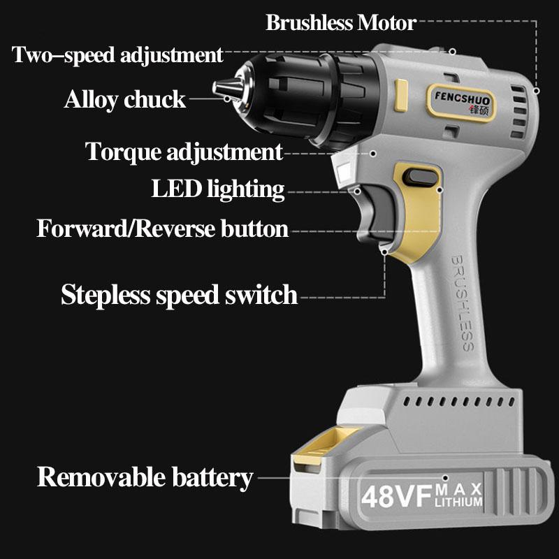 48V Luxury Impact Drill Set High Endurance Cordless Drill Electric Screwdriver with Two Batteries and Tool Box
