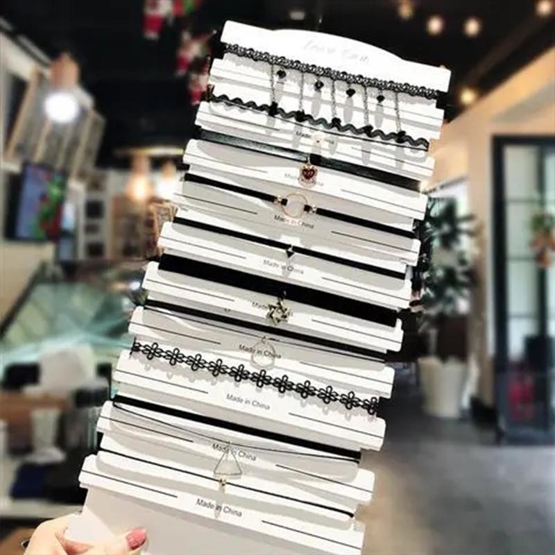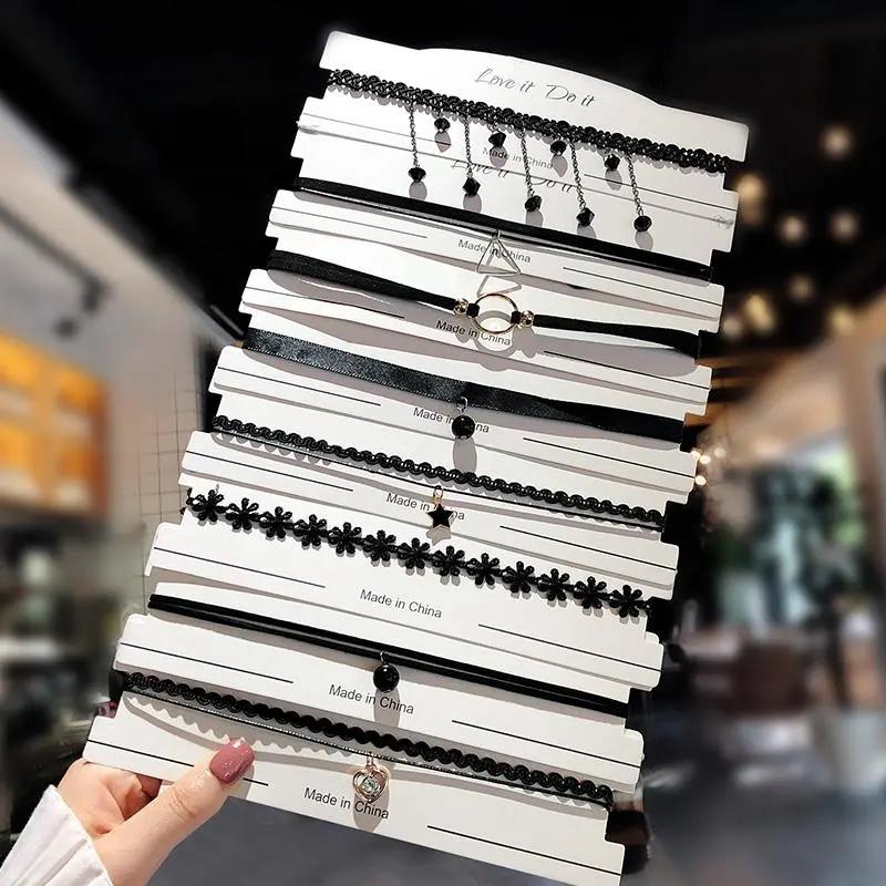 6/8PCS Lace Neckband Collar Necklace Short Necklace Black Rope Clavicle Chain Choker Neck Jewelry Mom Daughter Gifts Necklace Pendant Necklaces