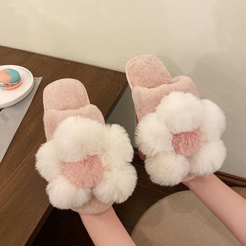 Autumn and Winter Big Flower Design Slippers Non-slip Thermal Insulation Cotton Shoes Comfortable Casual Fashion