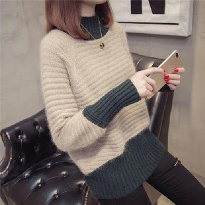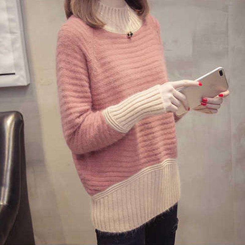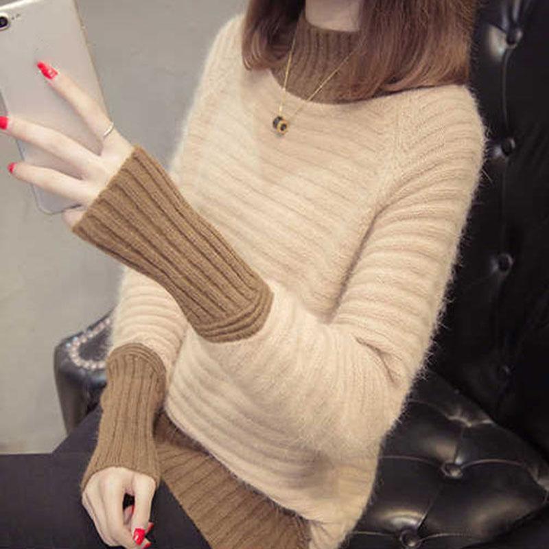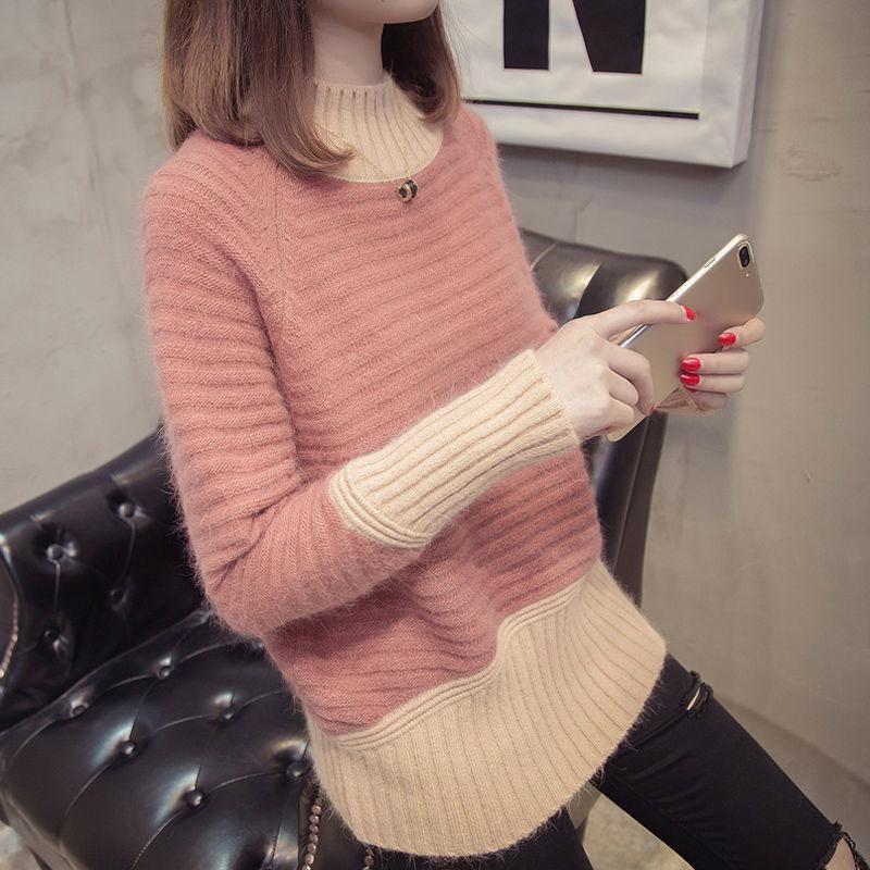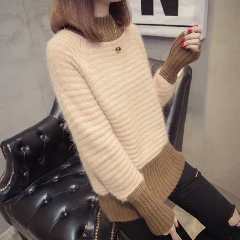 Autumn and Winter Half Turtleneck Pullover Loose Long-sleeved Knitted Bottoming Shirt Mohair Women's Sweater