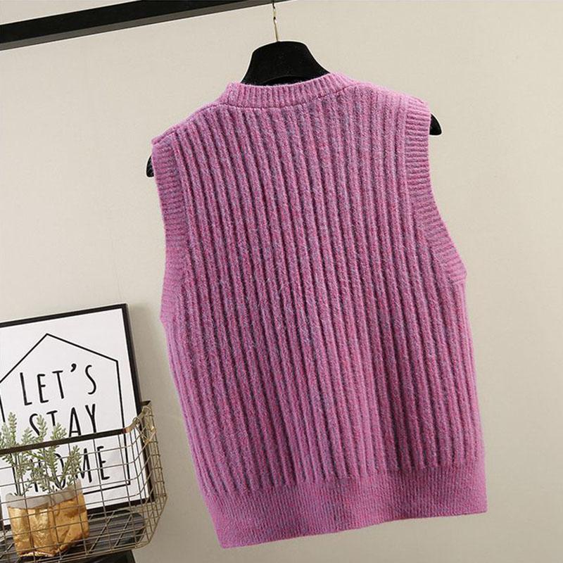 Autumn and Winter Knitted Pullover Vest V-neck Loose Solid Color Tops Fashion Short Women Tops