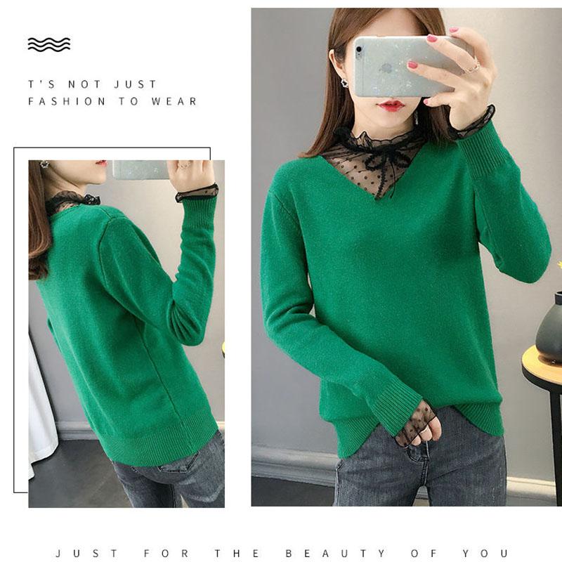 Autumn and Winter Lace Sexy Bottoming Shirt Knitted Solid Color Top Fashion Casual Women Sweater