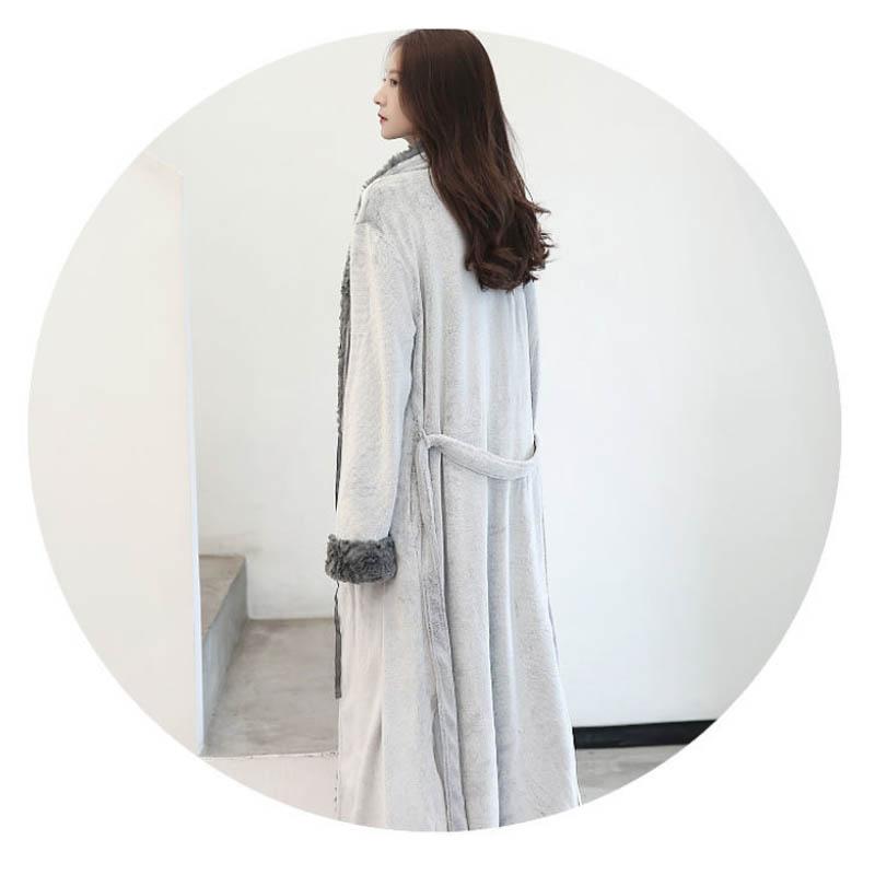 Autumn and Winter Long Flannel Nightgown Women's Nightgown Coral Fleece Dressing Gown Men and Women Can Wear Plus Velvet Thickening Couple Bathrobe