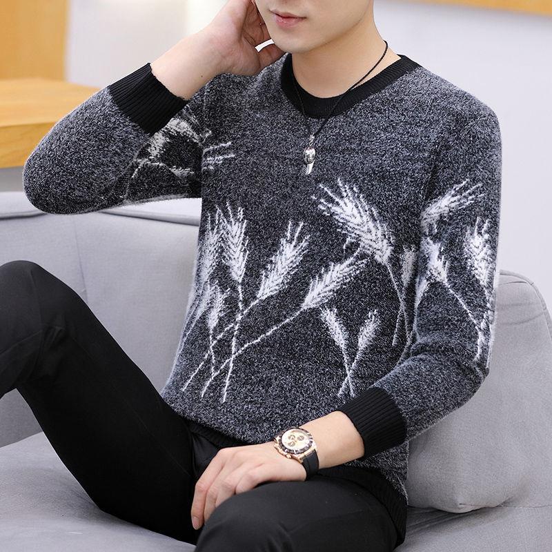 Autumn and Winter Men's Low-neck Sweater Fashion Padded Sweater Wheat Ear Pattern Long-sleeved Top