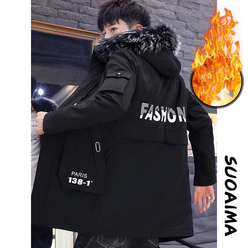Autumn and Winter Men's Trendy Jacket Mid-length Plus Velvet Thickened Student Windbreaker