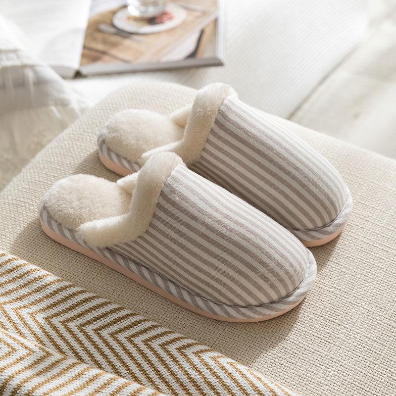 Autumn and Winter Pure Cotton Slippers Striped Design Indoor Non-slip Soft-soled Shoes Warm Simple Plush Cotton Shoes