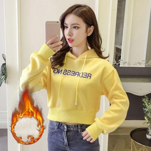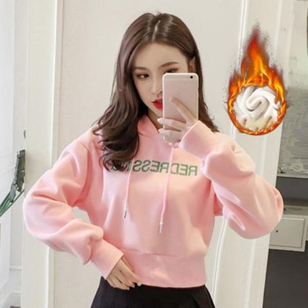 Autumn and Winter Short Hooded Sweater Embroidered Gold Velvet Thick Sweater High Waist Lantern Sleeve Blouse Women's Trend