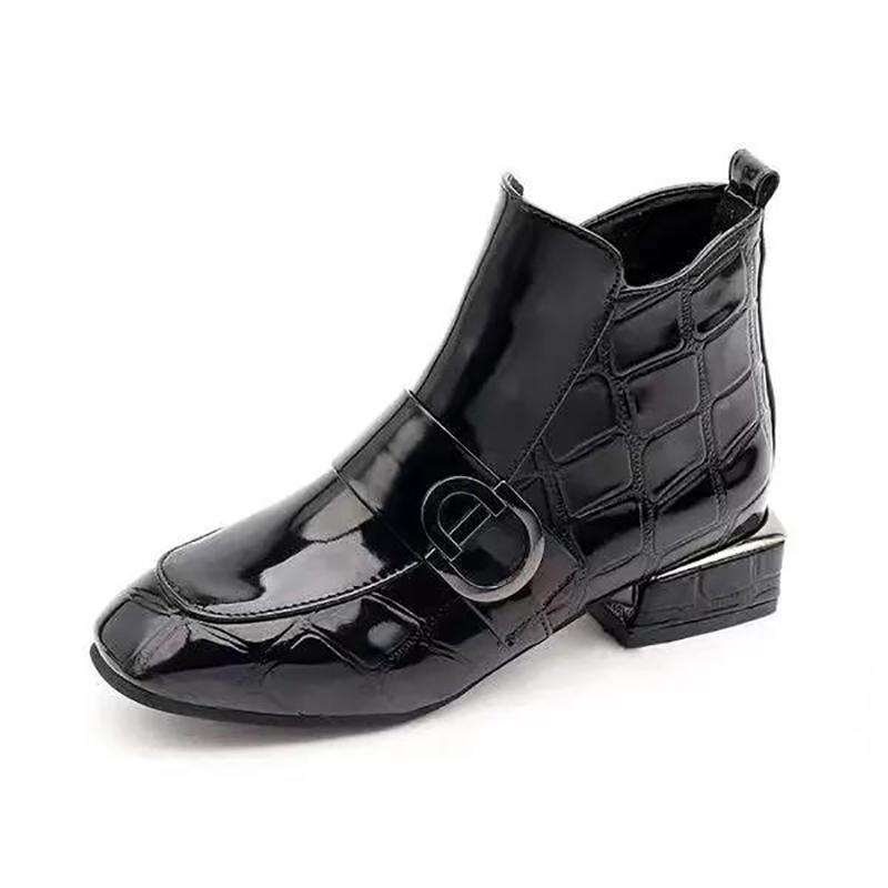 Autumn and Winter Women's Fashion Boots Flat Square Toe and Velvet Warm Martin Boots Korean Style Thick Heel Shoes