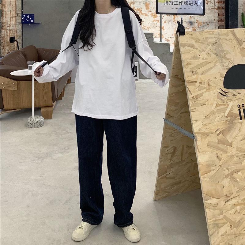 Autumn and Winter Women's Long-sleeved T-shirt Loose Large Size Pure Cotton Solid Color Warm Bottoming Shirt