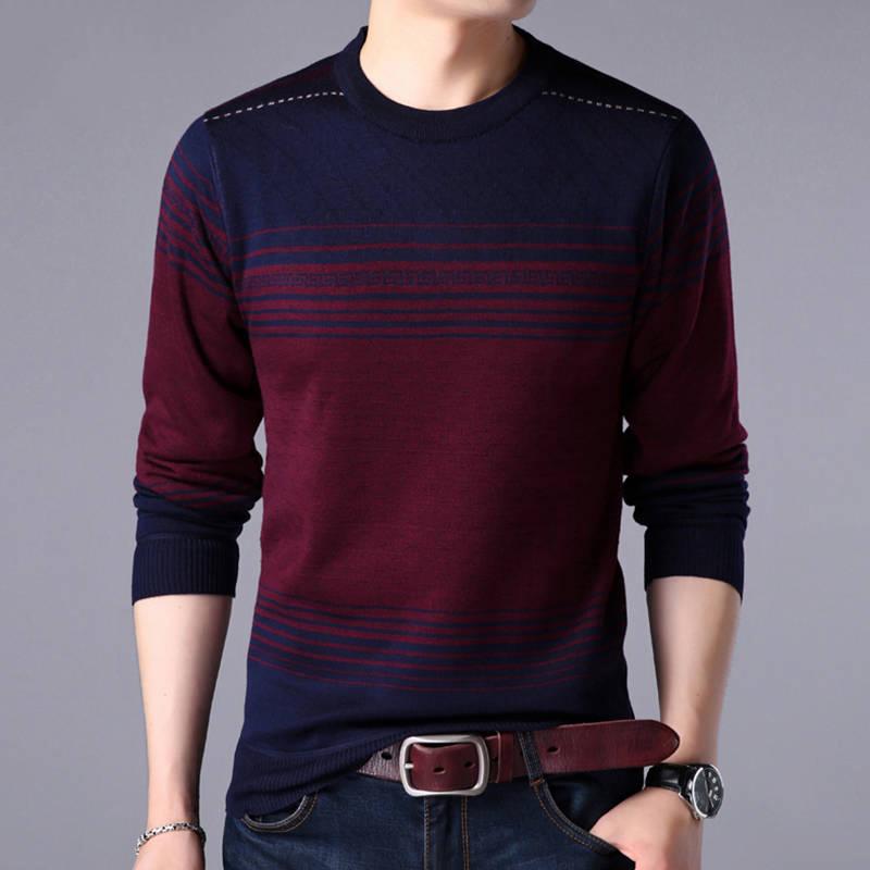 Autumn Casual Men's Sweater O-Neck Striped Slim Fit Knittwear Mens Sweaters Pullovers Men Pull Homme