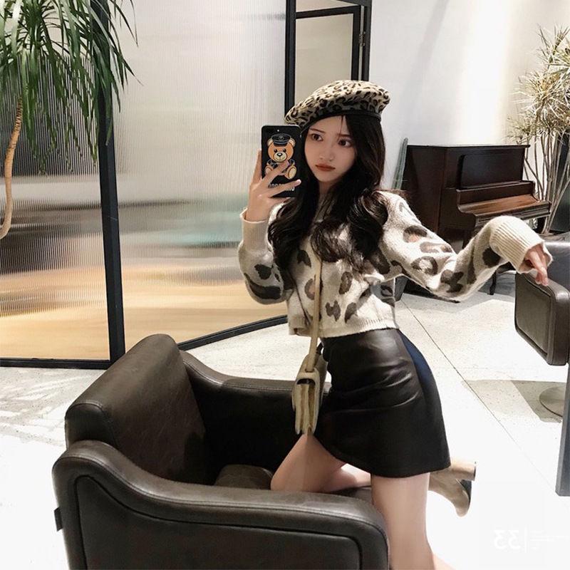 Autumn Fashion Loose Sweater Leopard Print Short Loose Pullover Short Round Neck Young Women's Knitwear