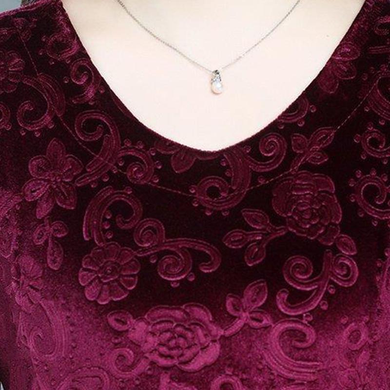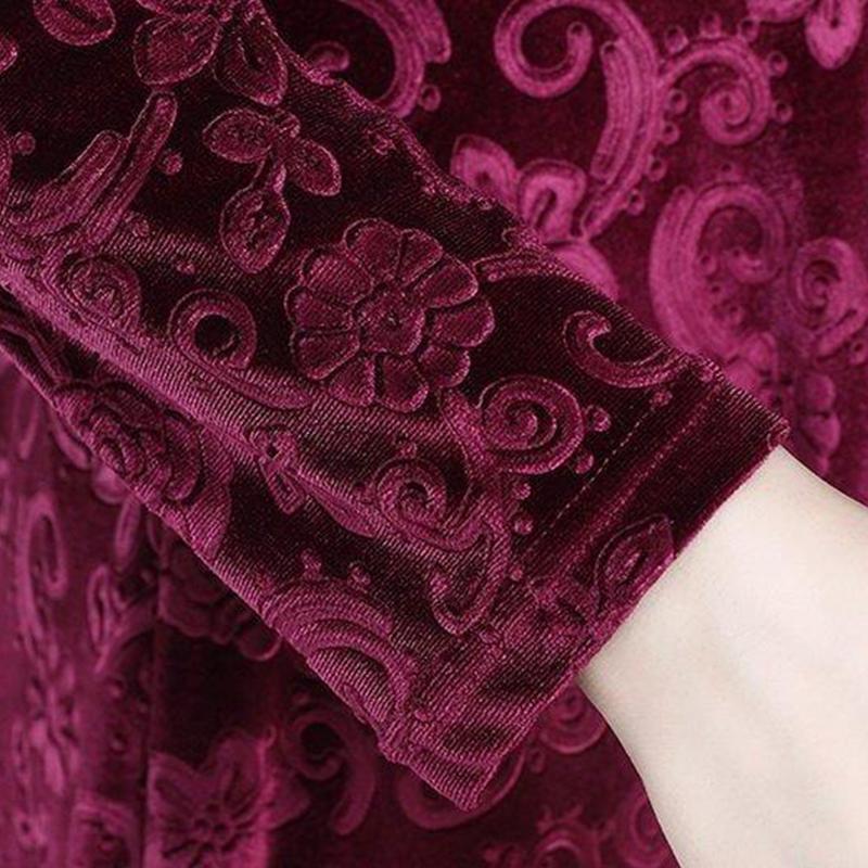 Autumn Plus Size Mid-length Dress Women's Gold Velvet Long-sleeved Large Swing Dress