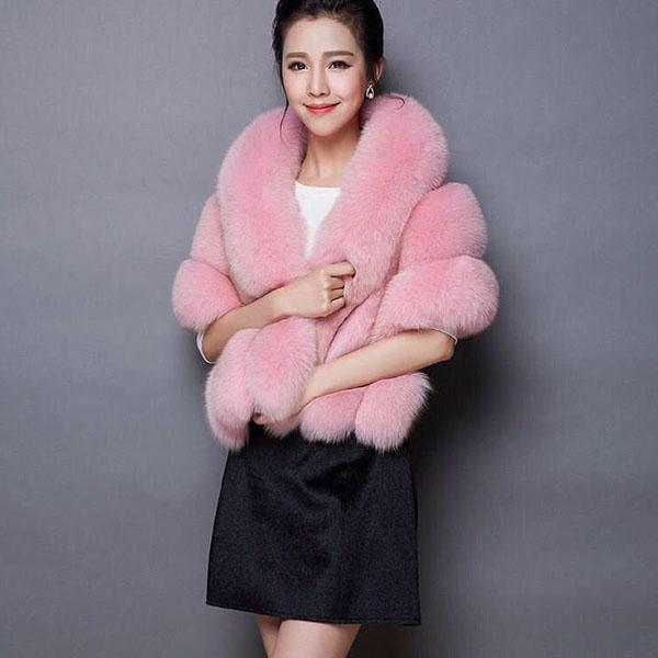 Autumn Winter Faux Fur Shawl Coat Women's Cheongsam Wedding Capes with Slim Fit Faux Fox Fur Warm Shawls and Wraps