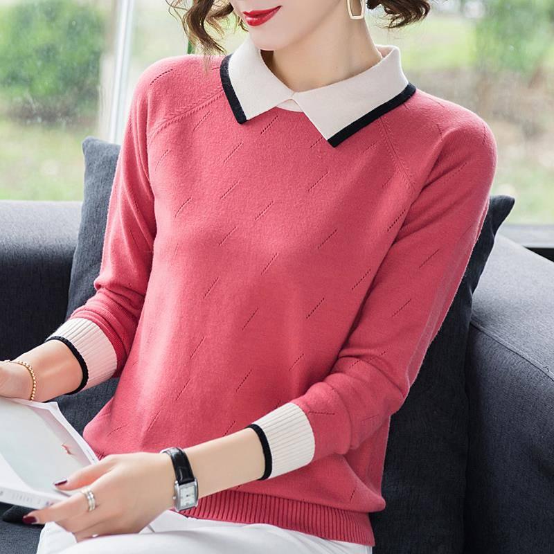 Autumn Winter Large Size Sweater Women's Long Sleeve Loose Doll Collar Pullover Sweater Knit Outwear