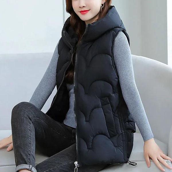 Autumn Winter Sleeveless Fashion Padded Jacket Loose Casual Slim Fit Warm Short Plus Size Hooded Waistcoat Vest Vest Thick Padded Jacket Women Outwear