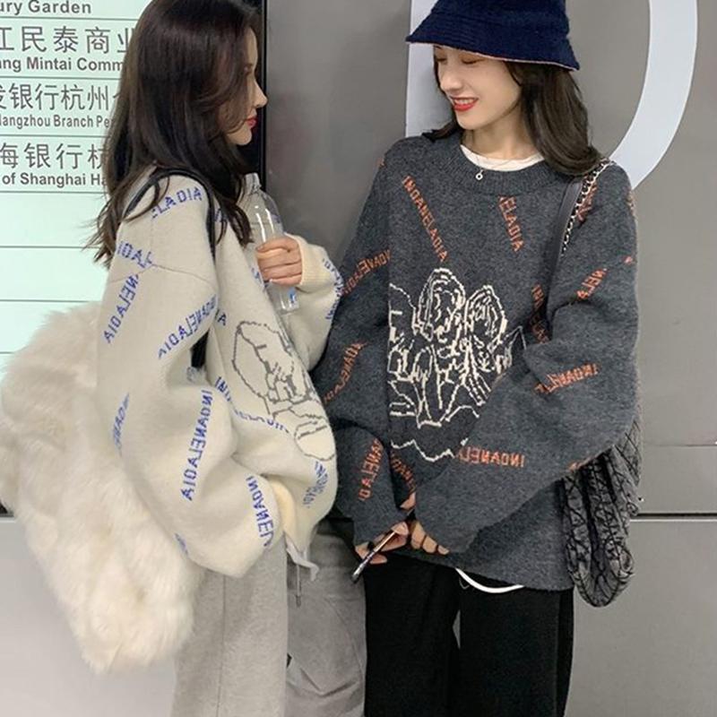 Autumn Winter Women Fashion Sweater Casual Knitting Sweater Round Neck Pullovers Loose Casual Long Sleeve Sweater