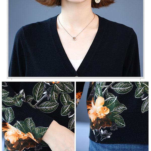 Autumn Winter Women's Knitted Sweater V-neck Printing Short Cardigan Knit Woolen Sweater Coat
