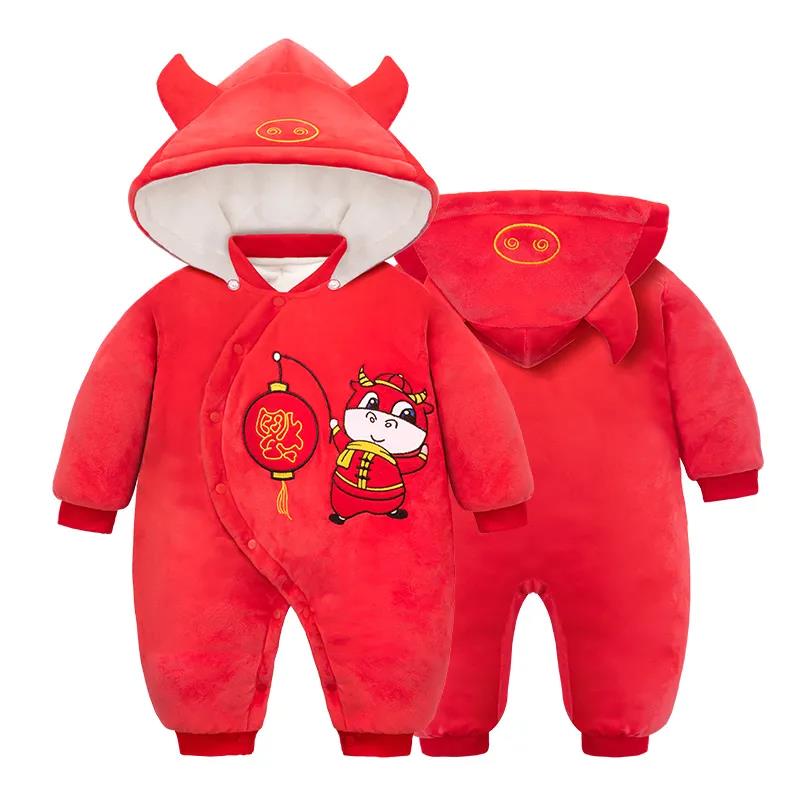 Baby Autumn and Winter Thickened Cotton-padded Clothes One-piece New Year's Clothing New Year Men and Women Newborn Full Moon Baby Cotton Clothes