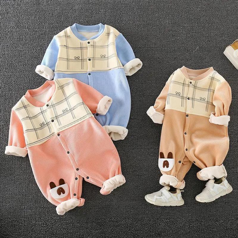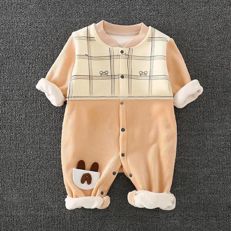 BABY BODYSUIT Autumn and Winter Style Plush Thickened Boys and Girls Baby Cute Ha Clothes Newborn Warm Clothes Outdoor Climbing Clothes