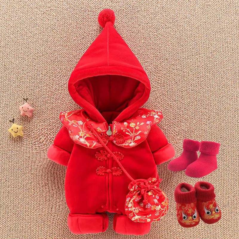 Baby Tang Suit One-piece Winter Newborn Full Moon Clothes for Men and Women Baby One-year-old One-hundred-day Dress Thickened Crawling Clothing
