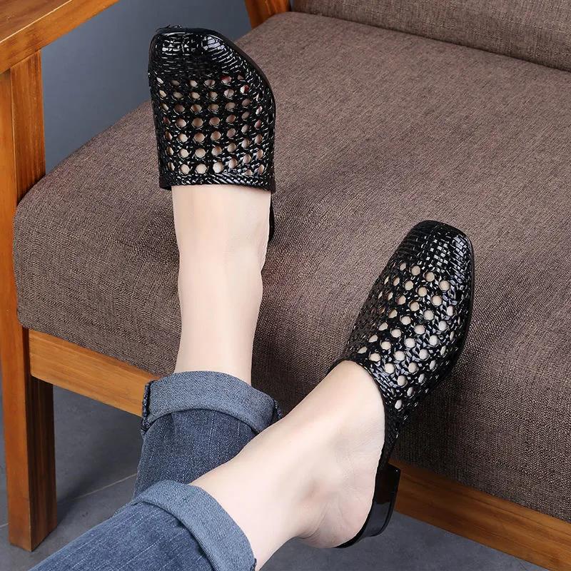 Beach Slippers Women Wear Baotou Summer Middle Heel Mother Shoes To Increase Outdoor All-match Non-slip Slippers High Heels