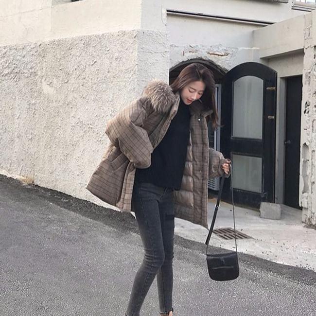 Features: soft, delicate, Mid-length, loose, down jacket; buttons, pockets, casual, comfortable
