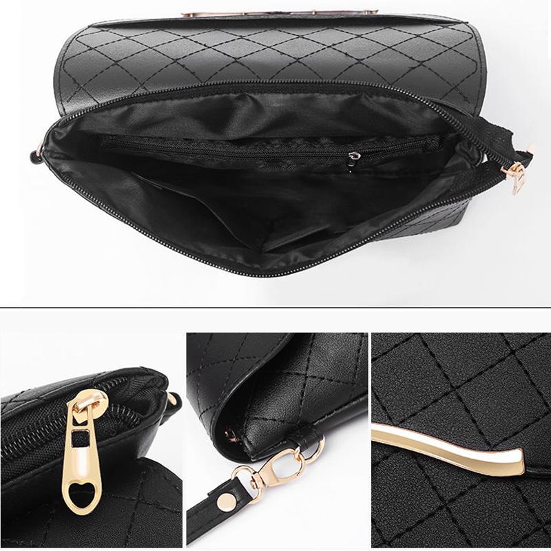 Black Check Leather Crossbody Multi-Layer Large Capacity Bag Women Casual Portable