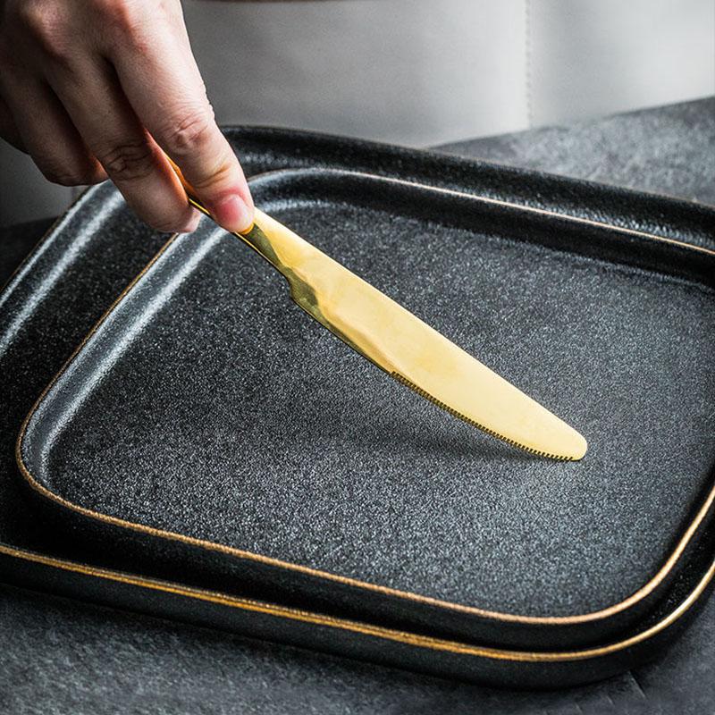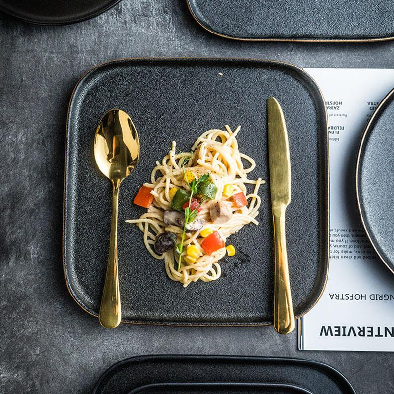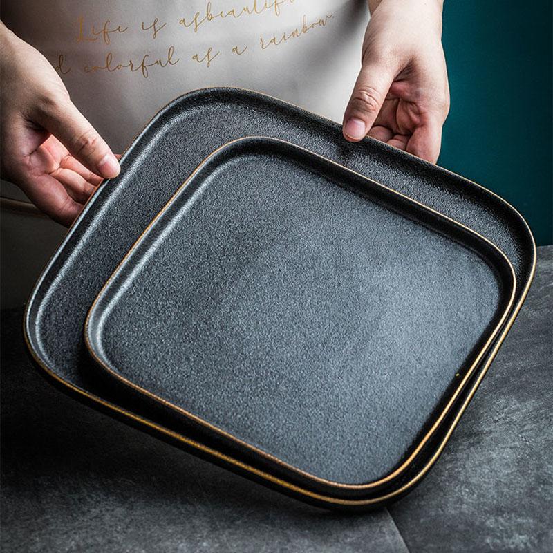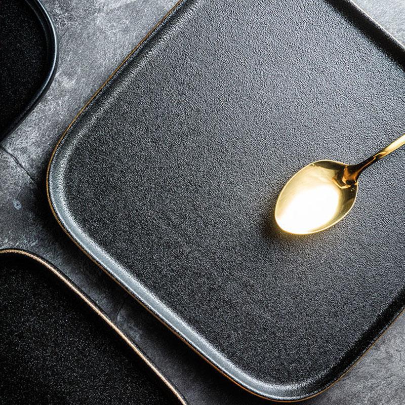 Black Frosted Steak Plate Western Style Home Western Food Plate Western Restaurant Steak Plate Square Plate Fruit Plate