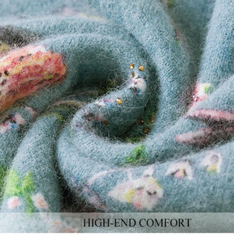 Bohemian Women Short Printed Woollen Sweater Female Rhinestone Soft Sweater V-neck Jumper Knit Pullover Outwear