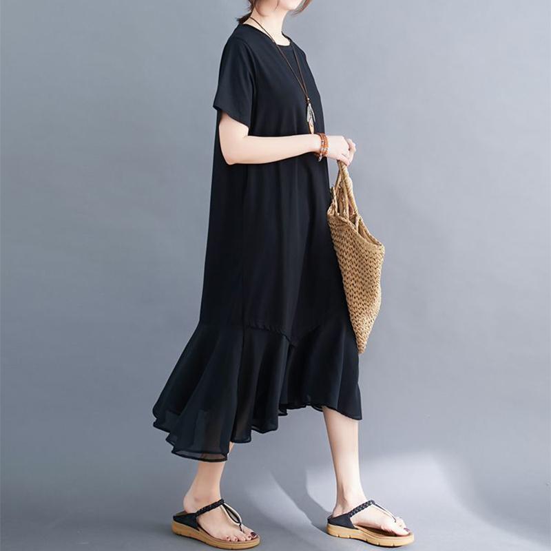 Boho Long Dress for Women O Neck Short Sleeve Large Hem Beach Long Dress Elegant Women's Dress