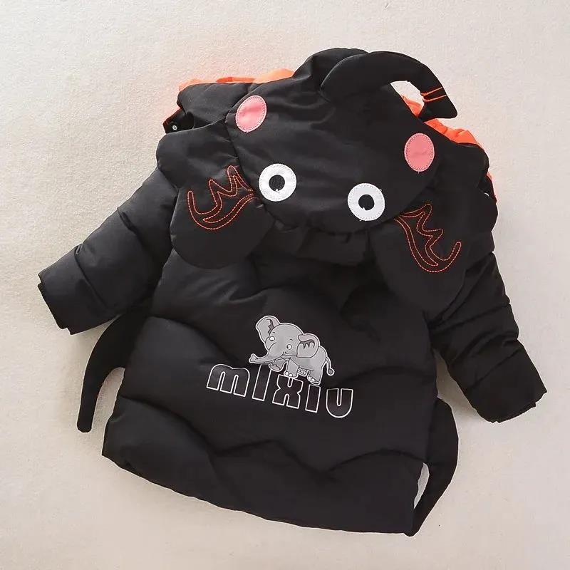 Boy's Cotton-padded Jacket Mid-length Thick Hooded Cotton-padded Jacket Baby Jacket Winter Children's Warm Cotton-padded Jacket Animal-shaped Hat