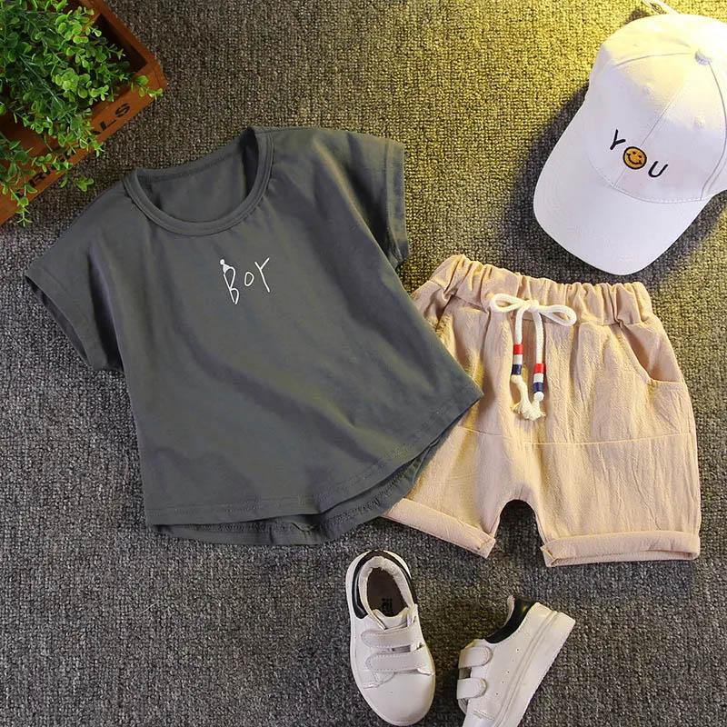 Boys' Pure Cotton Sweat-absorbent Breathable Soft Short-sleeved + Shorts Two-piece Summer Leisure and Comfortable Children's Suit