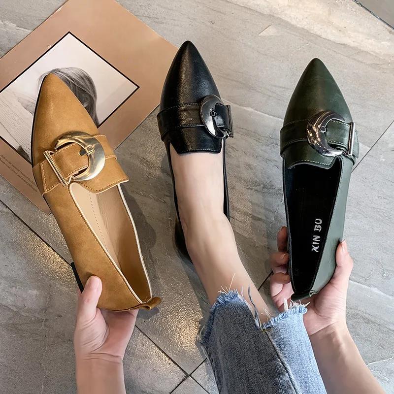 British Style Pointed Toe Shoes Women Soft Leather Soft Sole Single Shoes Pointed Toe Flat Shoes Peas Shoes Loafers Women Casual Shoes