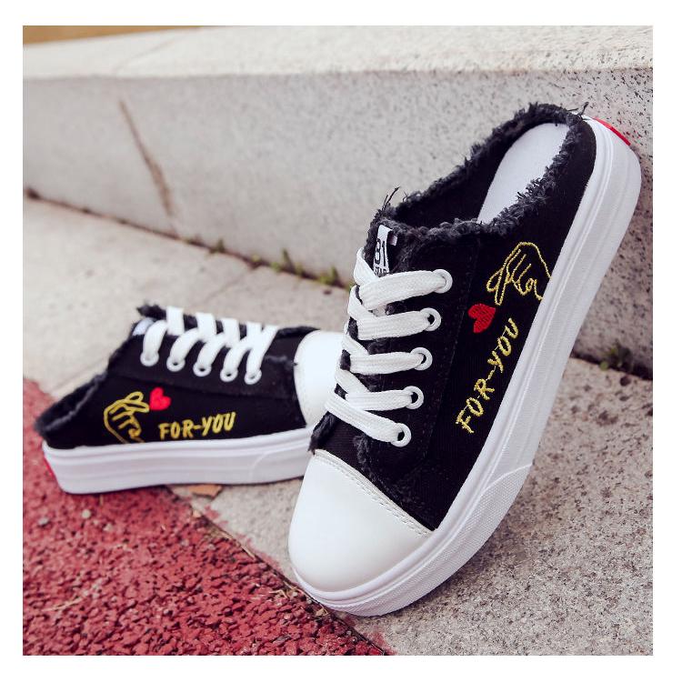 Canvas Shoes Half Drag 2132 Sandals Women Shoes Platform Loafer Fashion Non-slip Breathable Vulcanized Shoes