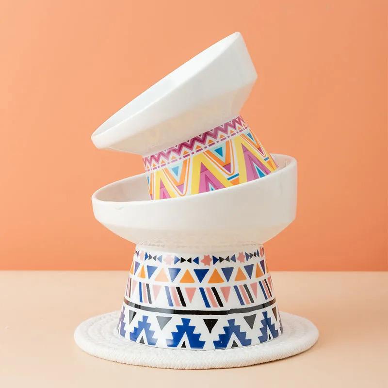 Cat Bowl Ceramic Protective Cervical Spine Oblique Mouth Cat Food Bowl Food Dispenser Water Bowl Anti-overturning Bohemian High Stand Bowl