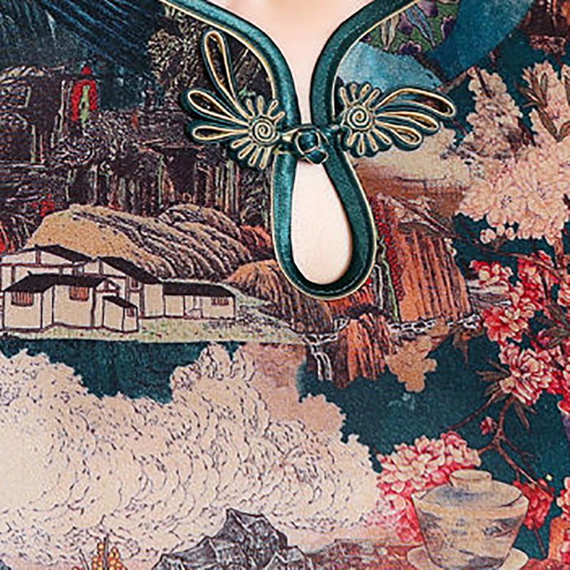 Cheongsam Female Summer Plus Size Mother Dress Daily Improved Version Low-collar Cool Cheongsam Dress Female Thin Section